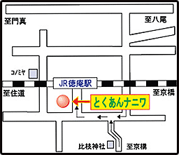 ◆電車でお越しの場合 JR片町(学研都市)線「徳庵」駅前。西出口より徒歩15秒
